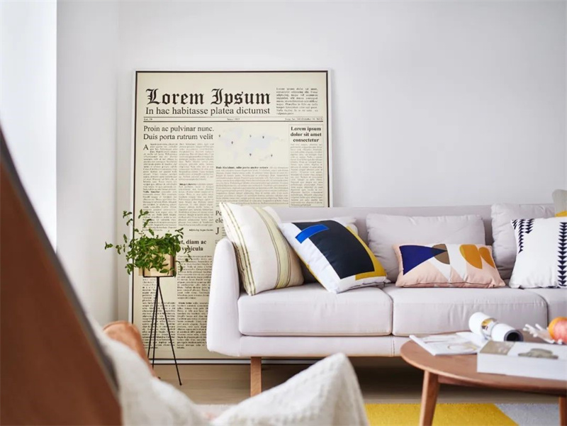 客廳以白色系與木色為主,搭配原木的家具,處處散發著自然舒適的氣息,電視與背景墻融為一體,復古的石膏像擺放在木茶幾上,滿滿的藝術氣息撲面而來,清新自然又富有文藝感,簡潔大方的設計,展現出層次感。
